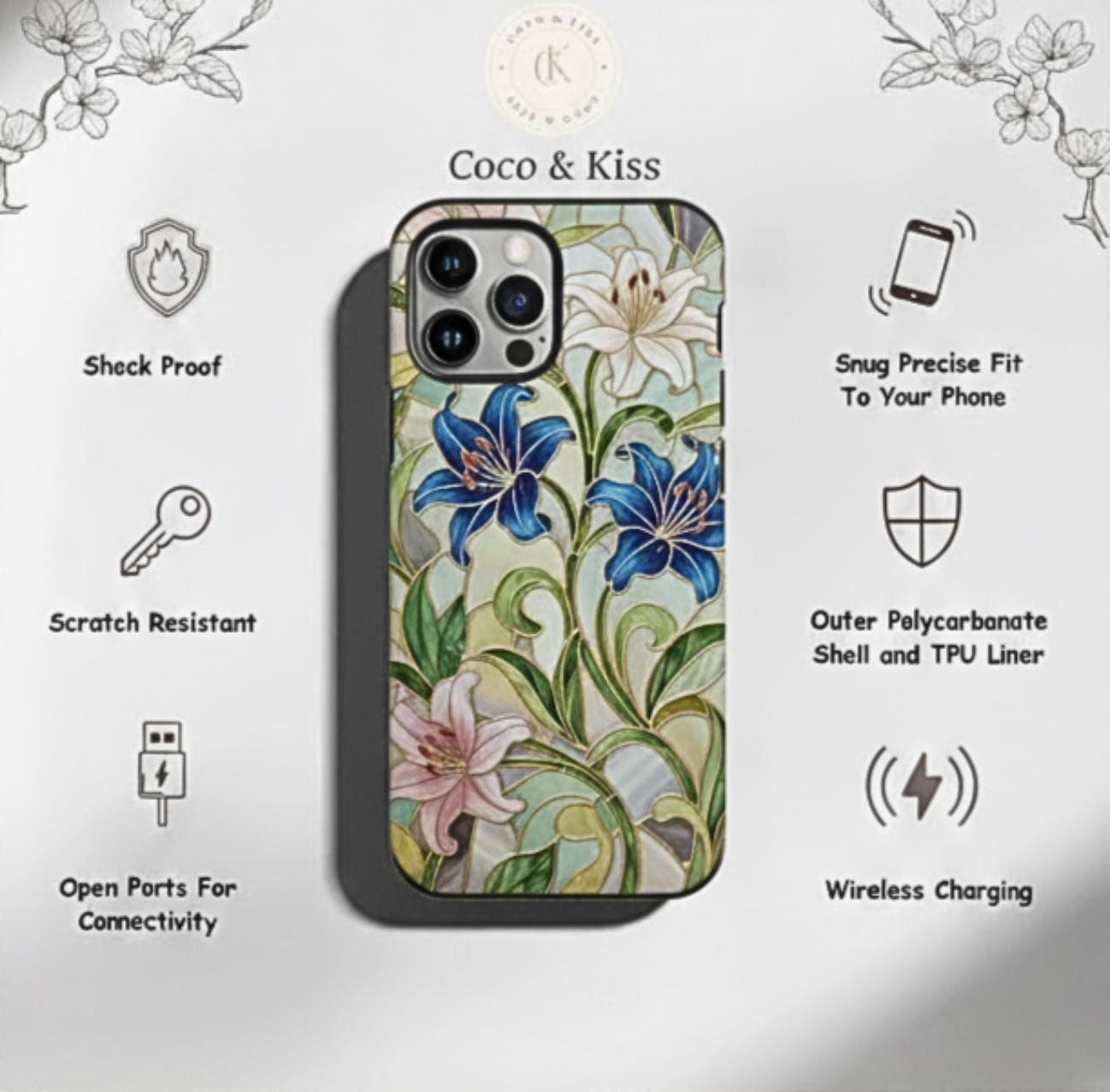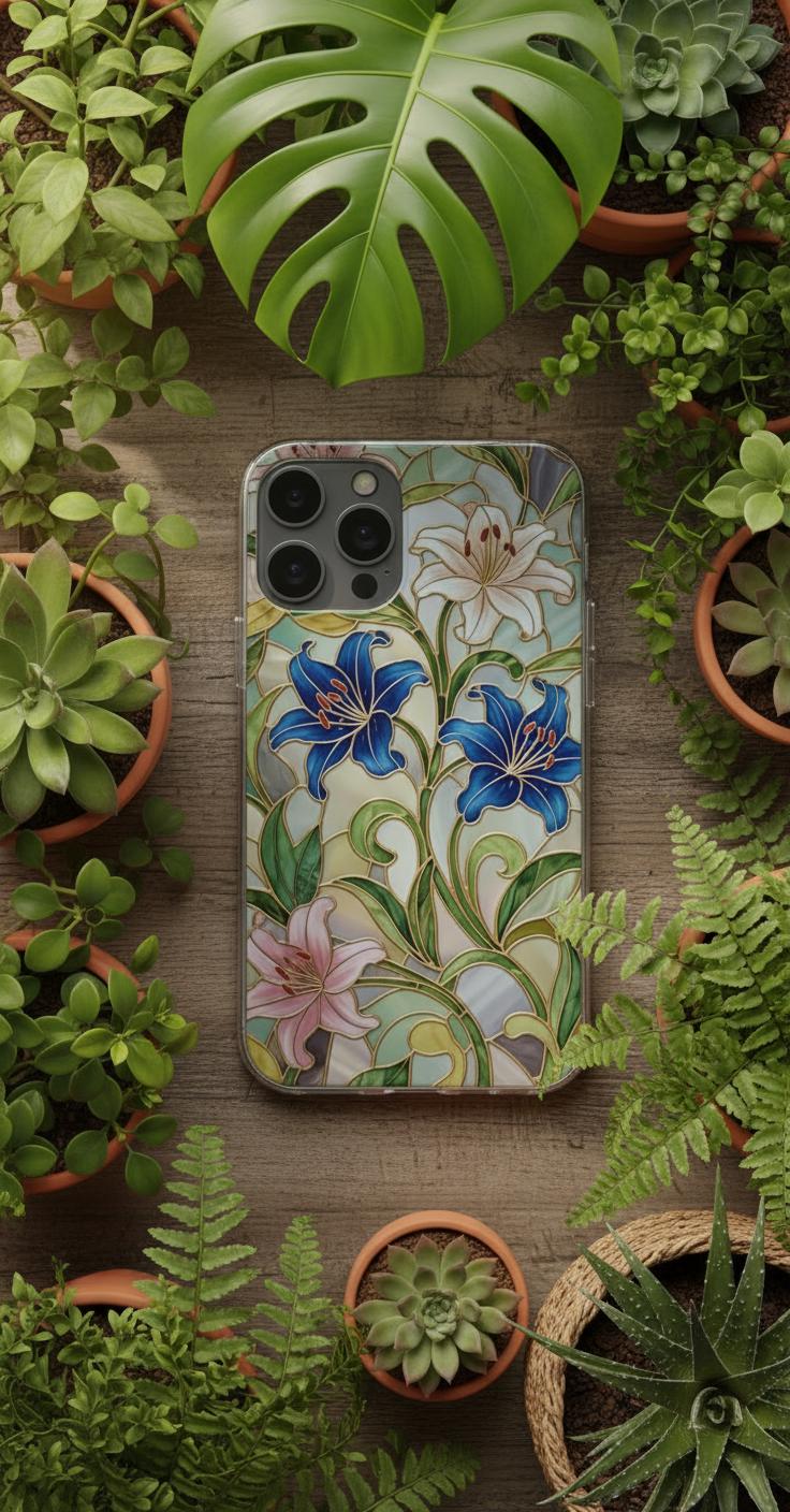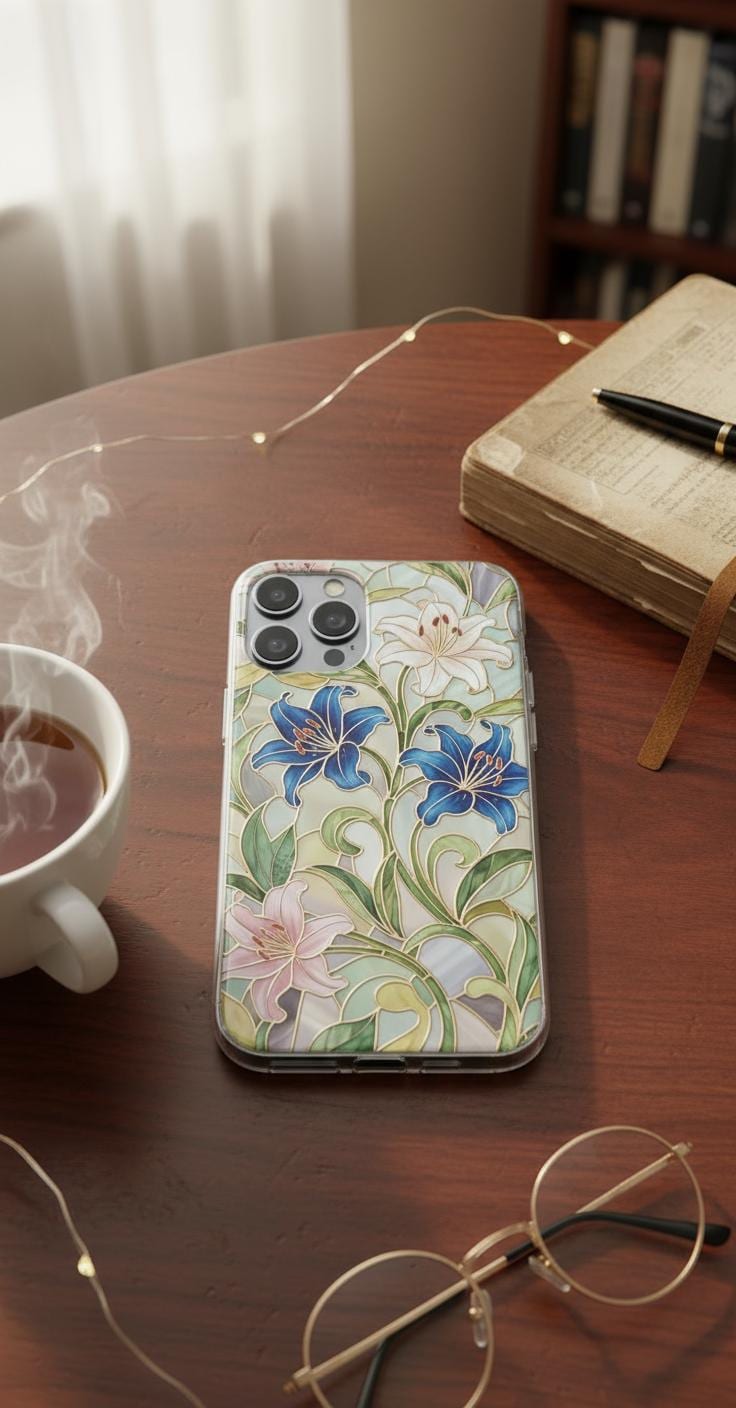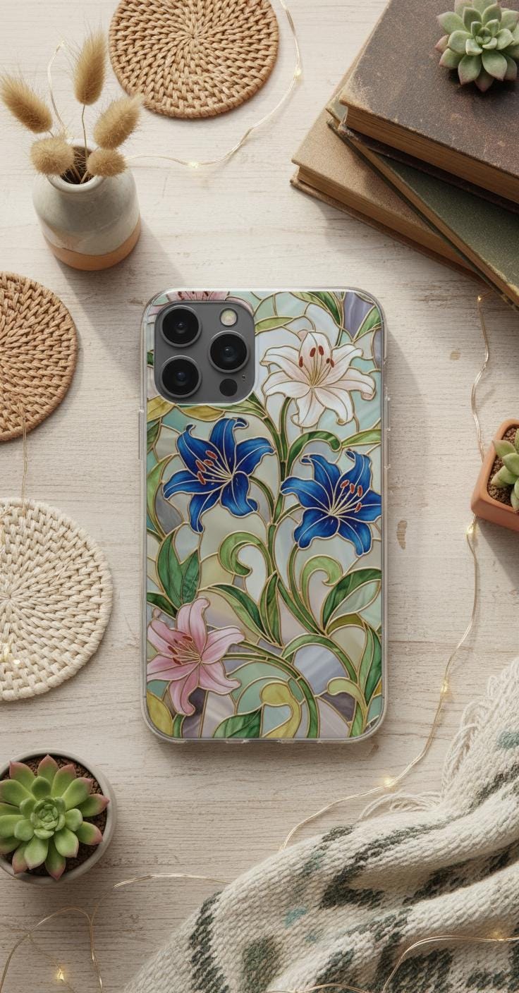 Discover the perfect blend of style and protection with the Lily Symphony Phone Case. Adorned with a stunning stained-glass inspired floral design featuring blue, pink, and white lilies, this case exudes elegance and sophistication. Designed for those who appreciate art and detail, it’s a must-have accessory for anyone who values aesthetics as much as functionality.